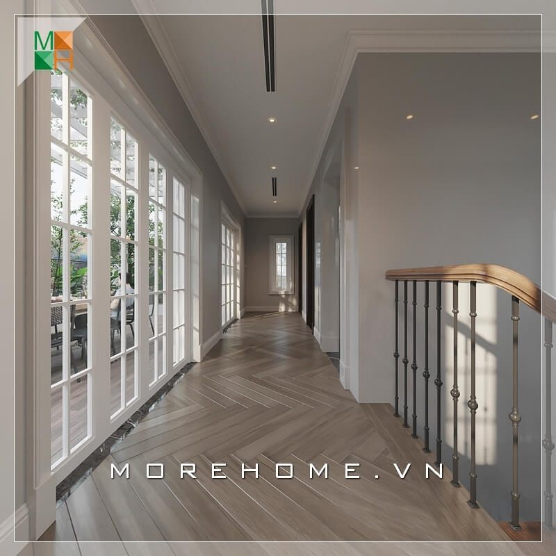 Hàng lang nhà phố, biệt thự thoáng đãng thêm phần rộng rãi với vách kính tiện nghi đem ánh sáng cho không gian sống lý tưởng.