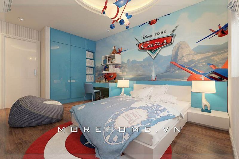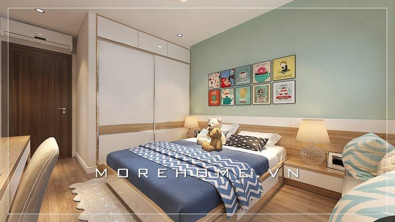 Tủ quần áo gỗ công nghiệp với thiết kế âm tường tiện dụng phù hợp cho phòng ngủ 2 bé trai